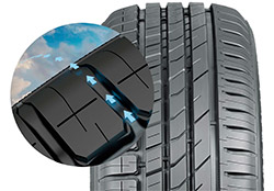 Новый дизайн протектора создан, чтобы обеспечивать хорошие ходовые характеристики по любым дорогам в любую погоду. Плотно расположенные друг к другу шашки плечевой зоны обеспечивают жёсткость протектора во время движения. Благодаря этому сохраняется контроль и качество управления в экстремальных ситуациях и при резких маневрах. Плавно расширяющиеся к внутренней зоне канавки Blade Grooves вместе с технологией Coanda обеспечивают ускоренное отведение воды, предотвращая риск аквапланирования.